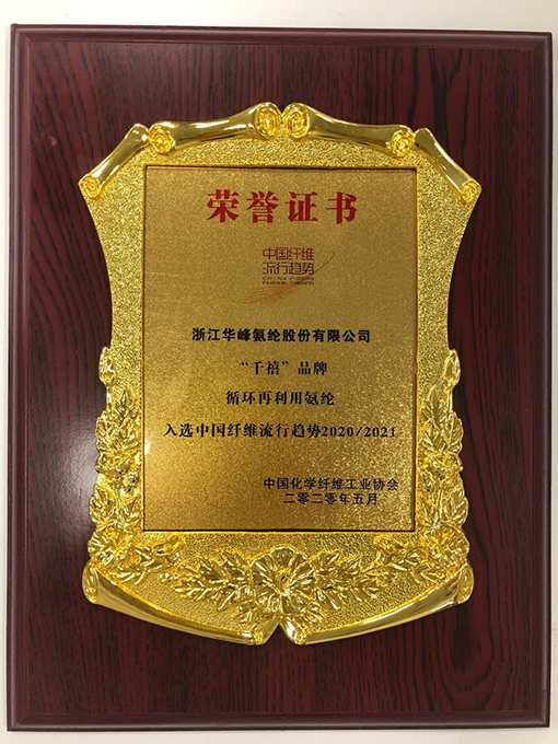 | 中国化纤行业绿色制造优秀企业 | 浙江华峰化学股份有限公司 | 中国化学纤维工业协会 |