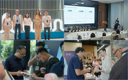 代表团队先后参观了华峰先进实验室与创新产品展示区,并在报告厅听取了关于华峰Freemount?、Linxfon?、Terrafon?、Covershow?、3D打印、Regen?等创新材料的介绍。与会代表在交流环节中,围绕材料性能、应用场景与可持续性等议题,与华峰团队展开了多轮深入讨论。会议期间,Sergio Dulio与尤若楠频繁交流,并多次表达了对华峰创新成果的高度赞扬,充分肯定了华峰在创新科技领域的领先实力与可持续发展的贡献。